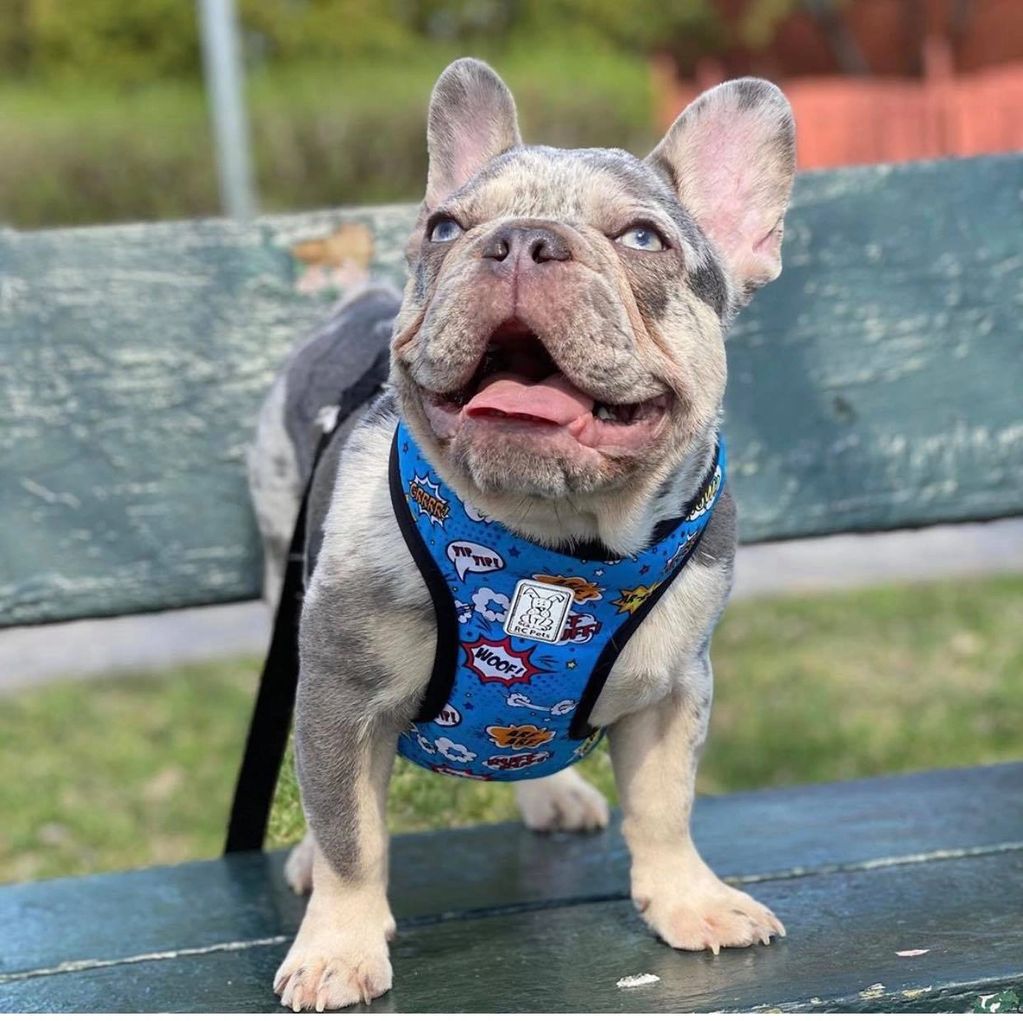 Because of their short noses Frenchies have more difficulties breathing, collars can sometimes be dangerous for them. A harness disperses pressure over a larger area of the puppies' body, reducing strain on his neck and back. Harnesses discourage pulling. When your dog is wearing a collar and pulls on the leash, he's still moving forward, which makes him think the pulling is successful.